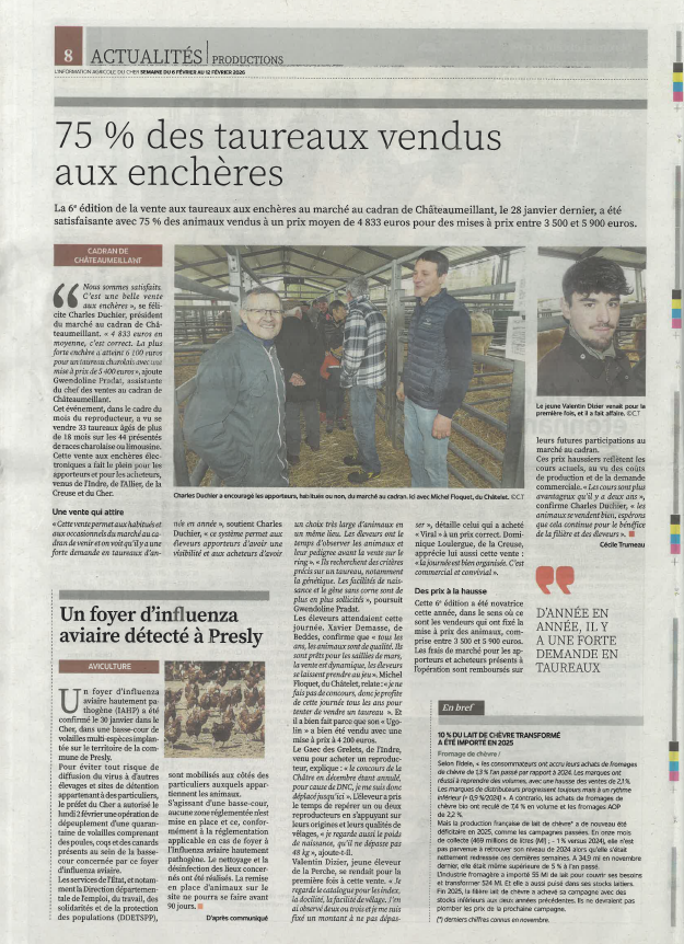 Foire reproducteurs du 28 janvier dernier sur l’information agricole du Cher